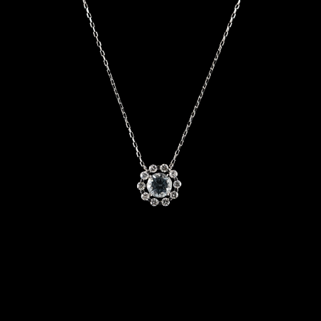 Colgante y cadena de oro blanco con aguamarina y diamantes
