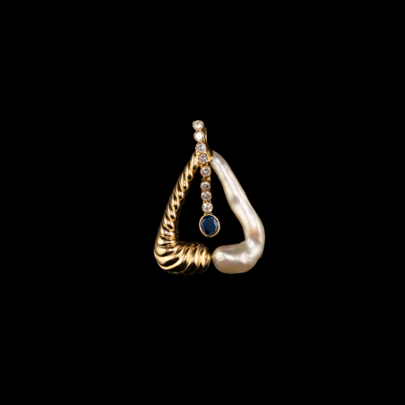 Colgante de oro amarillo con zafiro, perla y diamantes