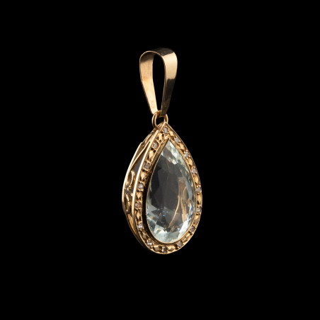 Colgante de oro amarillo con cuarzo azul y diamantes
