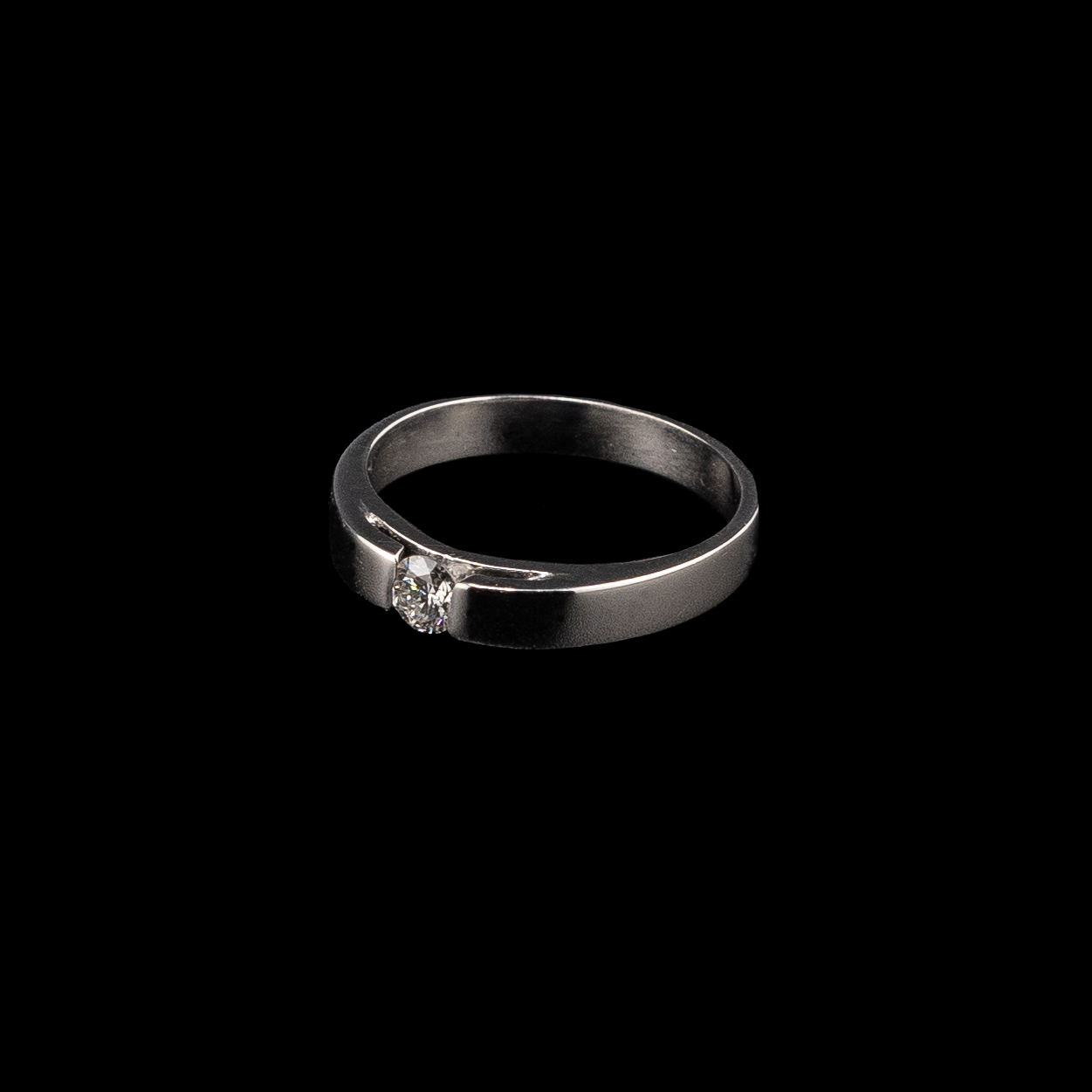 Anillo solitario de oro blanco 18K 3,54 gr. con diamante 0,15 quilates. Disponemos de taller para ajustar la medida del anillo a su dedo de elección con una tarifa plana de 25 euros. Pónganse en contacto con nosotros para indicarnos su número.