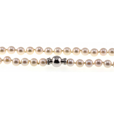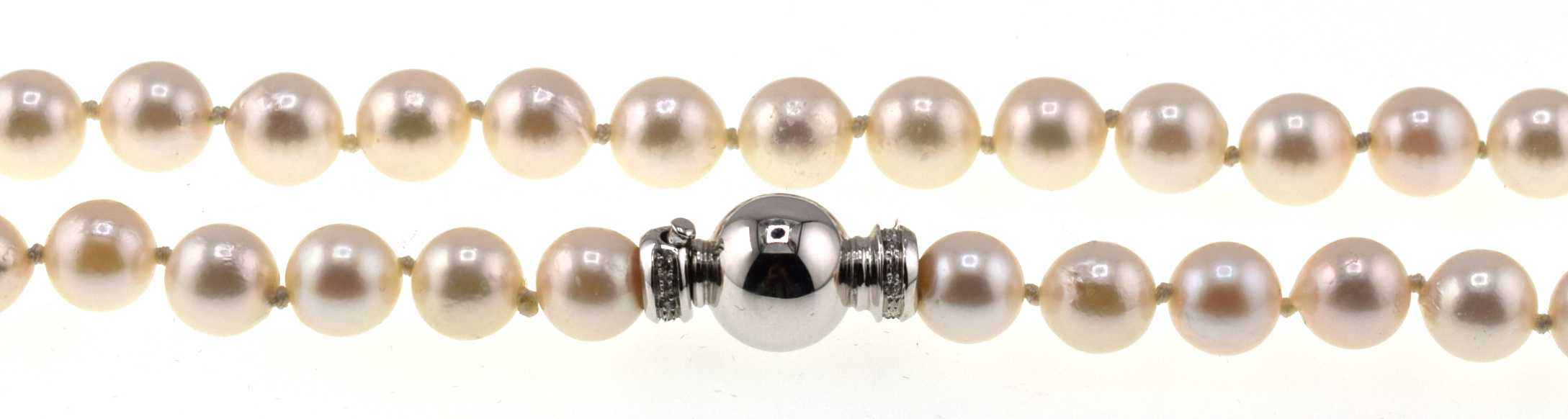 Collar un hilo de perlas cultivadas de agua dulce de 8,5 a 8,9 mm con cierre de oro blanco en forma de esfera 12 diamantes de 0,005 quilates total: 0,06 quilates 46,5 cm 48,2 gr