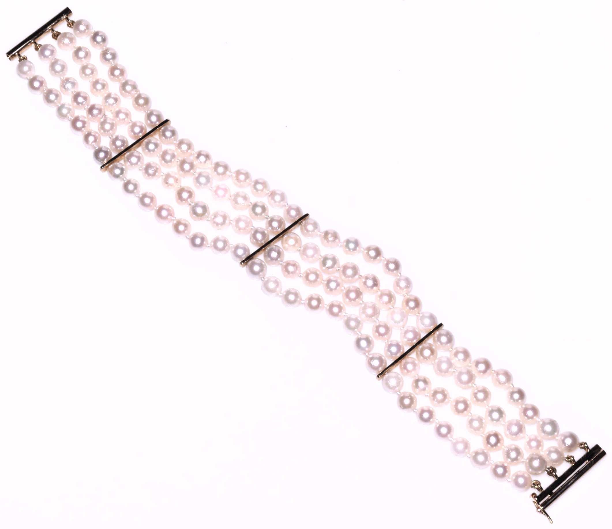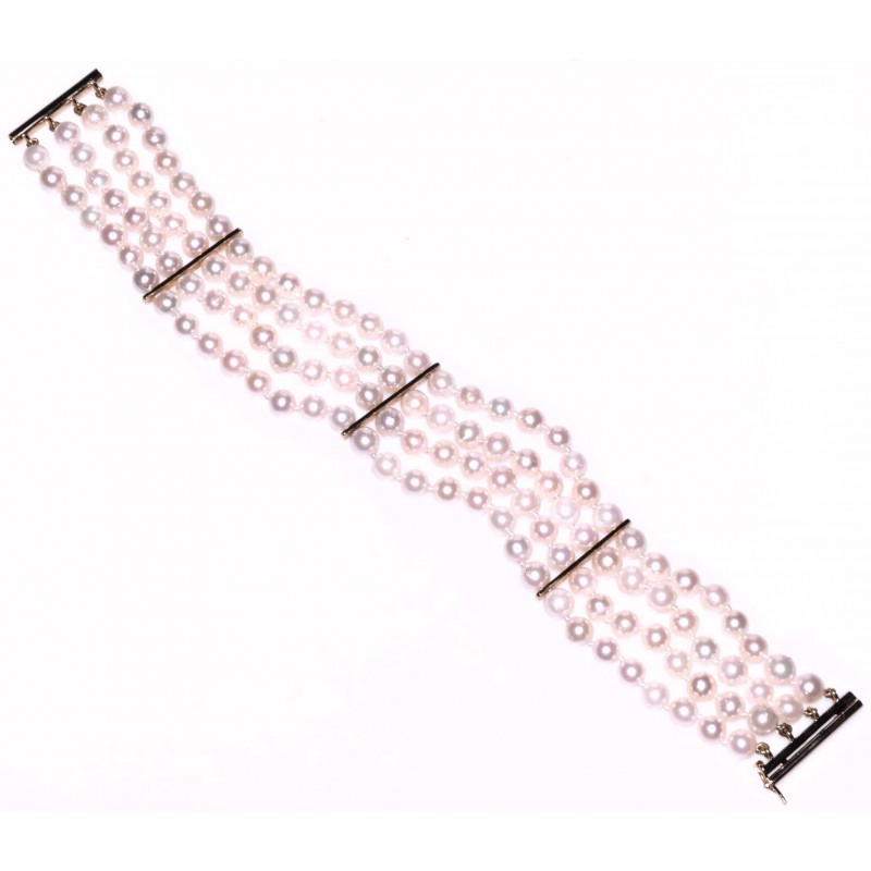 Pulsera de 4 hilos de perlas de 5,5 mm y entrepiezas y cierre oro amarillo 18K Largo: 19 cm. Peso: 39,28 gr