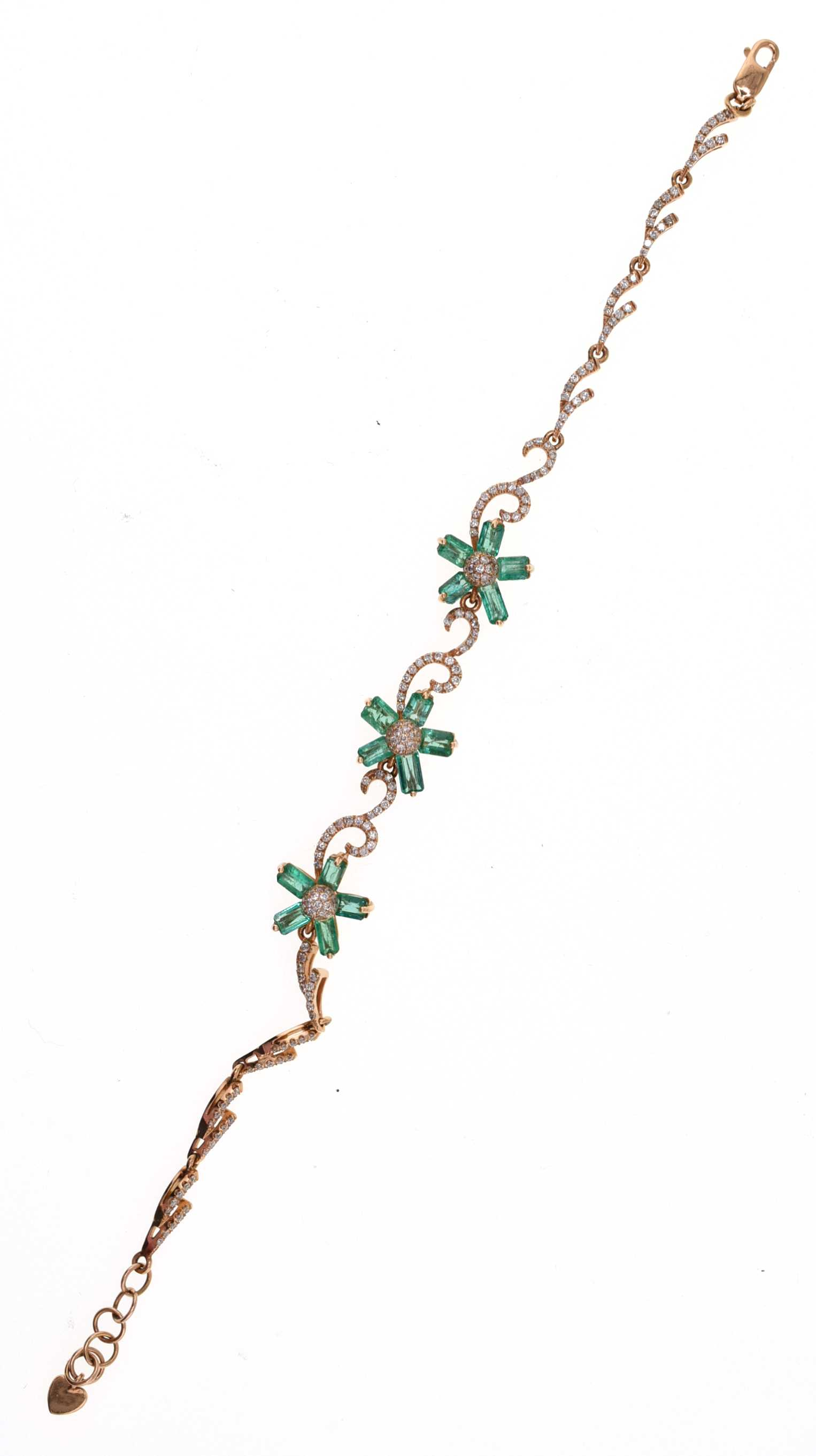 Pulsera de oro rosa con esmeraldas y diamantes